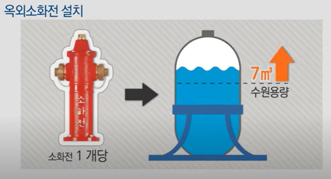 ✔️ 소화전 1개당 수원 용량 7㎥ 이상 확보 되어야합니다.