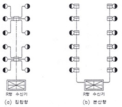 - 회로는 소용량(5회로 미만)으로 각 구역마다 중계기를 설치합니다.